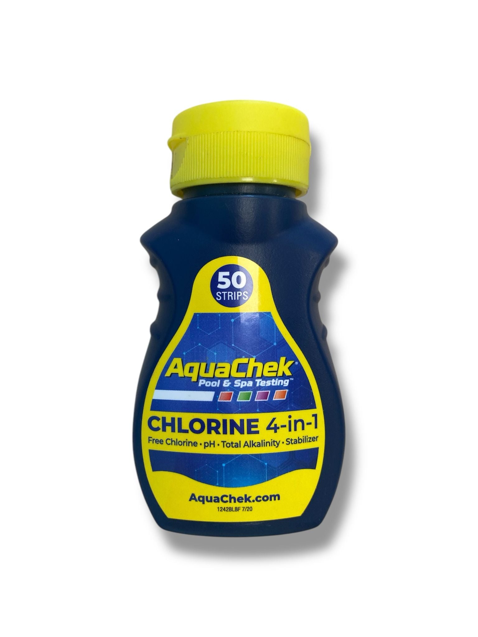 - Test que mide: cloro libre, pH, alcalinidad total y ácido cianúrico (estabilizador).